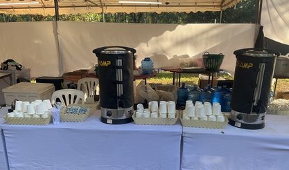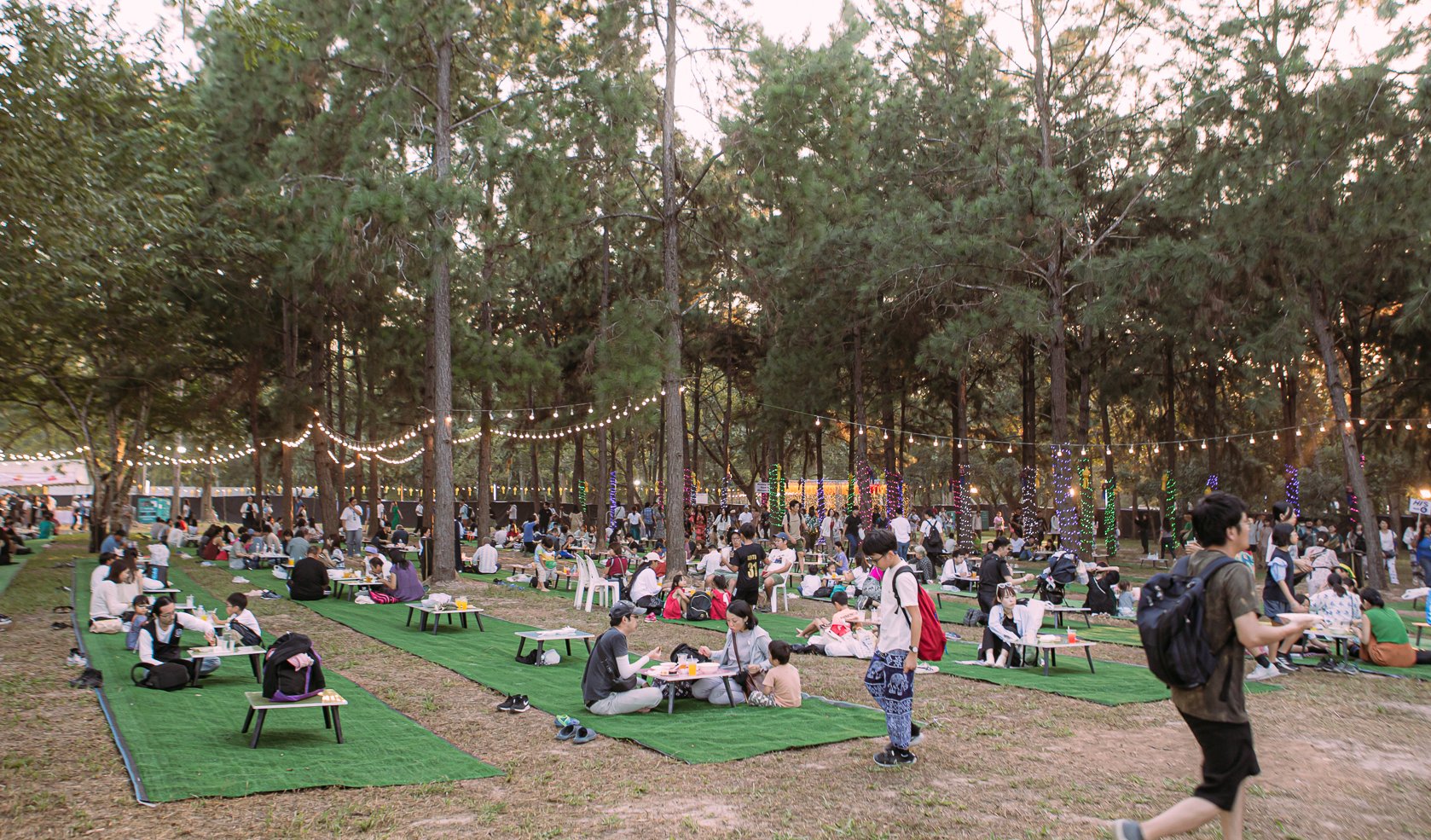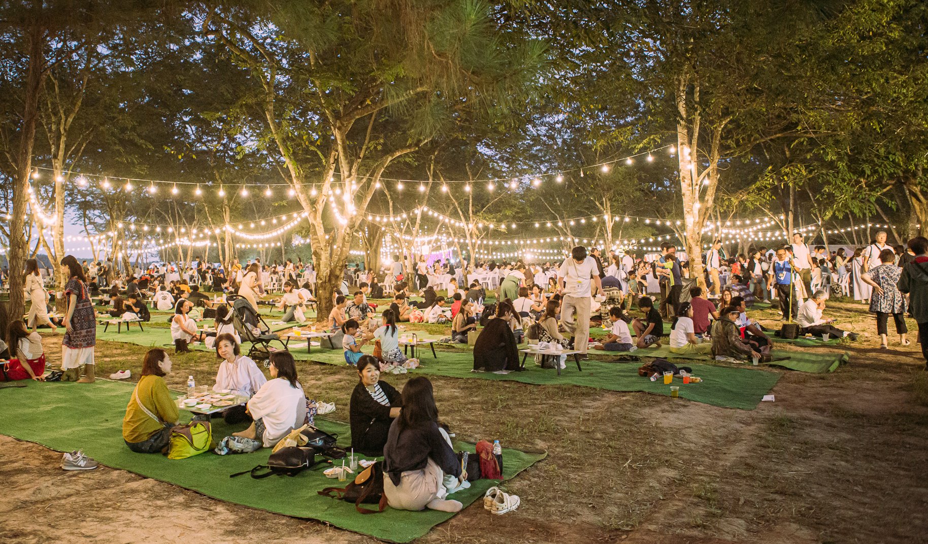 木陰にある食事&休憩エリアは、椅子席と足を延ばして寛いだり小さなお子様にも最適な小テーブル&敷物席とテーブル&椅子席の2種類のエリアがある自由席になります。