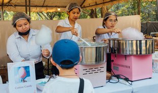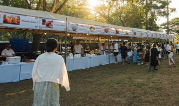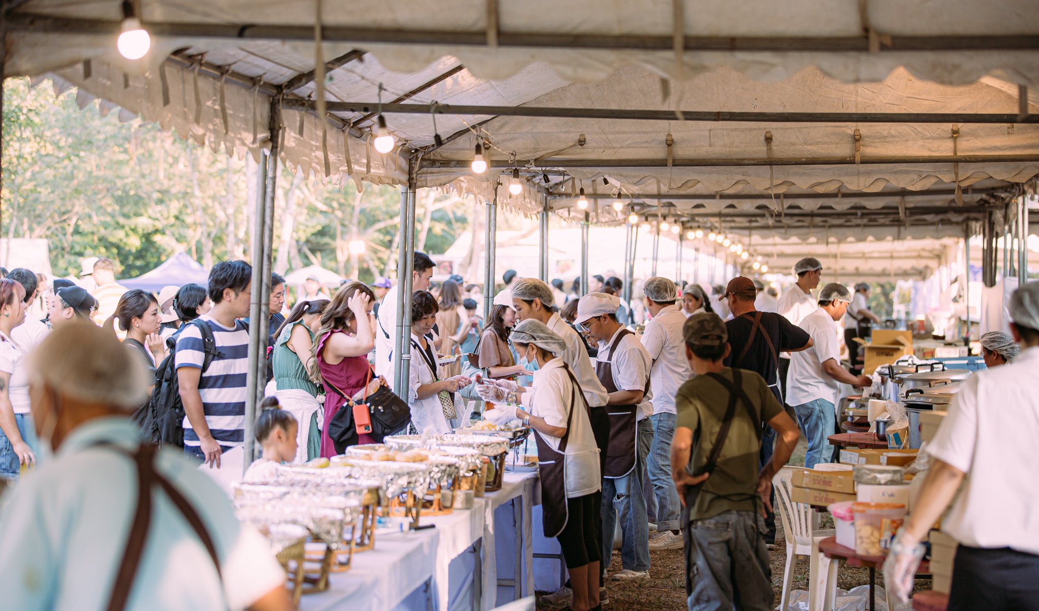 食べ放題の形式で飲み物や料理は各屋台にて受け取る事ができます。