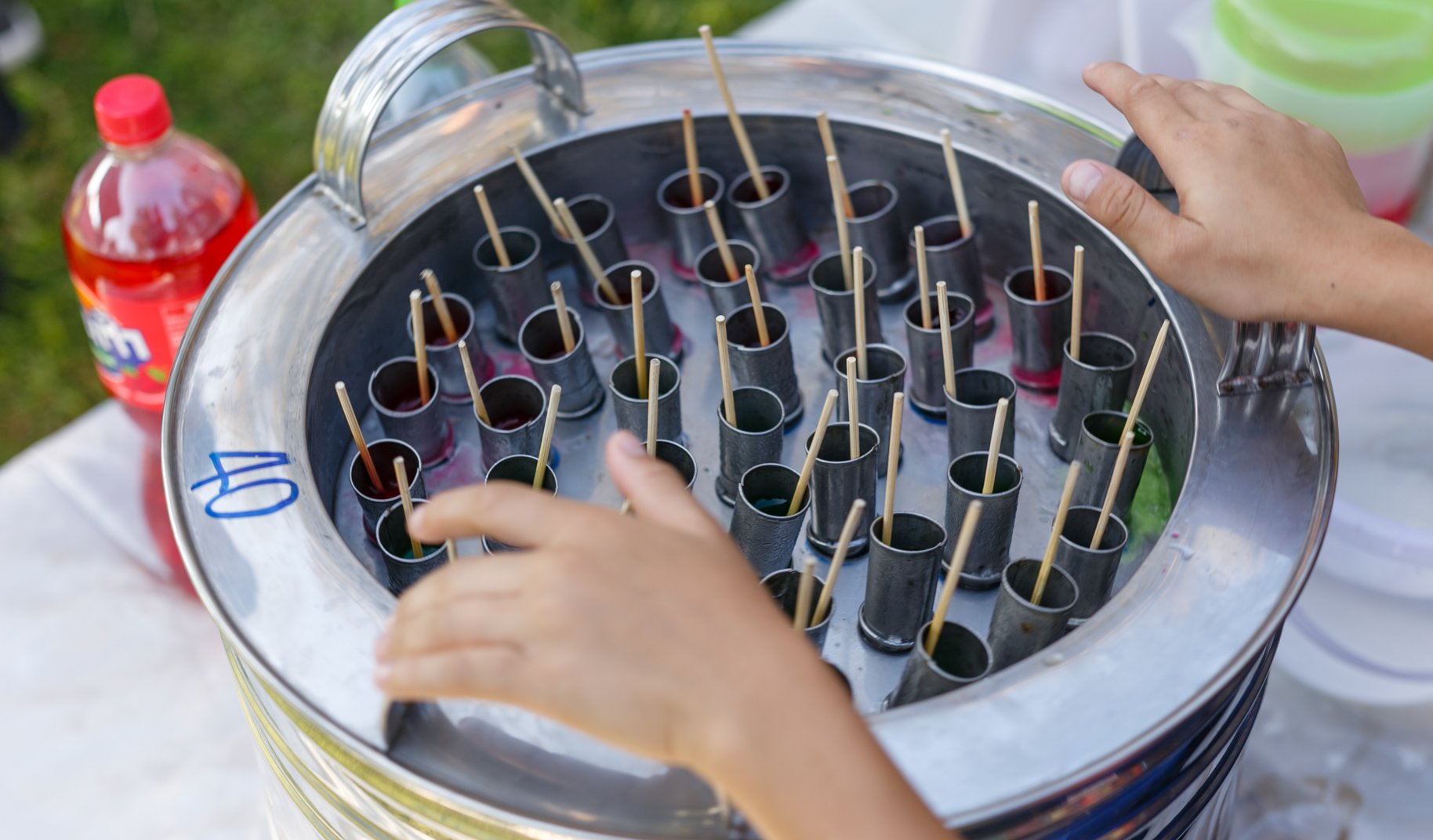 (氷塩水の冷却でジュースを凍らせる氷菓)